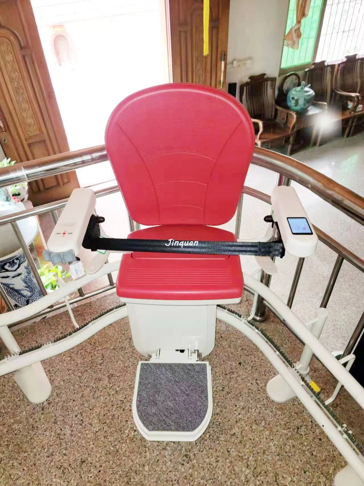 在歐美一些地區(qū)的房屋設(shè)計(jì)一般在內(nèi)部結(jié)構(gòu)上有階梯,但很多房屋沒有安裝電梯的空間。為了讓移動不便的人能輕松上樓,我們推出了可以安裝在樓梯上的電梯。座椅電梯是安裝在樓梯側(cè)運(yùn)行的簡易電梯。主要作用是幫助腿和行動不便的人上樓。座椅電梯的結(jié)構(gòu)一般由軌道、驅(qū)動裝置和座位三部分組成,驅(qū)動裝置和座位安裝在一起,因此外觀上看起來像在軌道上運(yùn)行的椅子。人們認(rèn)為只有老人才需要使用這樣的座椅電梯,其實(shí)這個想法具有片面性。現(xiàn)在社會上有很多人有脊髓病、關(guān)節(jié)炎、其他骨骼病等引起的行動障礙,醫(yī)生建議使用座椅電梯上樓梯以減少對身體的傷害。坐座椅電梯很方便,放下座位坐下,按扶手上的按鈕,座位就開始移動了。工作緩慢順暢,非常順暢。把手從按鈕上拿開,座椅馬上停止運(yùn)轉(zhuǎn)。再按一次按鈕就可以繼續(xù)走了。另外安全性也有保障。人坐在椅子上用安全帶保護(hù)著。避免掉下去。座位遇到障礙物時(shí)自動停止,即使行駛途中停電也不用擔(dān)心會影響安全。驅(qū)動電源是可反復(fù)充電的電池,足以把客戶送到安全的地面。曲線座椅電梯曲線型座椅電梯很難下別墅、舊辦公室等樓梯。優(yōu)雅的設(shè)計(jì),多種顏色的選項(xiàng),產(chǎn)品和你家的裝修風(fēng)格一體化,多種風(fēng)格的選項(xiàng)更節(jié)約你的空間,更方便使用。直線型座椅電梯只要安裝在一個直線樓梯上,就可以使用直線型座椅電梯,可以更經(jīng)濟(jì),生活更簡單,更開心。單軌座椅電梯,簡單的大氣外觀設(shè)計(jì),全面溫柔的細(xì)節(jié)處理只是為了追求完美,選擇折疊式軌道,簡單解決房間布局和安裝位置的沖突,生活方便。座椅電梯是用復(fù)式建筑、別墅、舊建筑改造解決老年人,行為不便的人下樓的好方案,真的讓你的生活變得更簡單,更快樂。